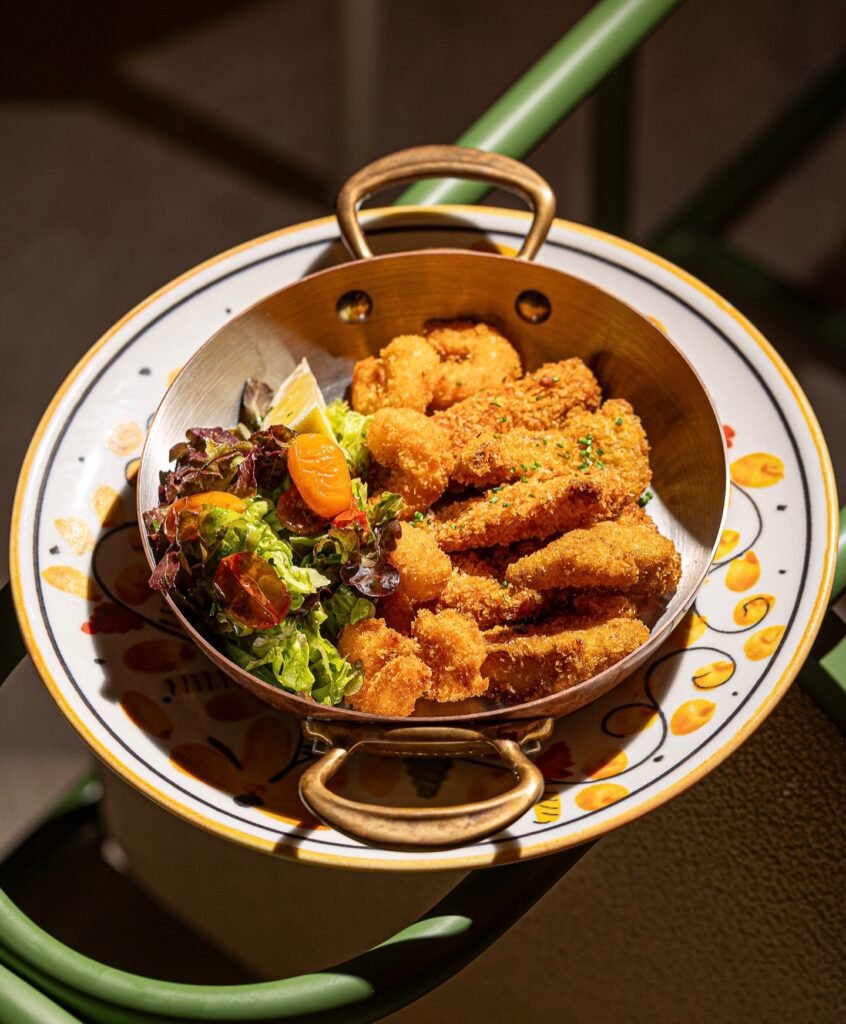 L’Œuf & Pomme Croquante joue la carte du comfort food européen. Œuf au plat, pommes de terre rissolées aux herbes, coulis de tomates. Le genre de plat qui réconforte sans frontières.