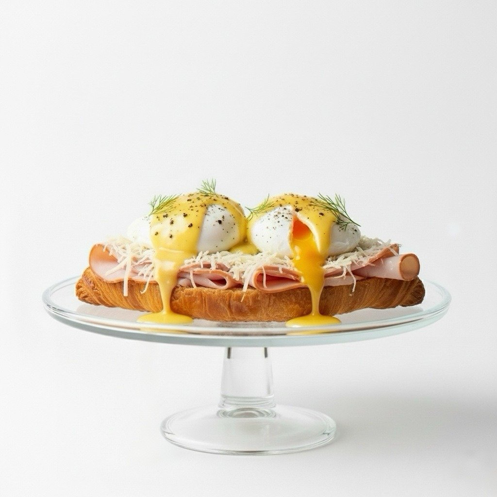 • Royal Benedict : croissant doré préparé maison, garni de jambon de dinde premium et de fromage affiné, le tout sublimé par notre sauce signature hollandaise.