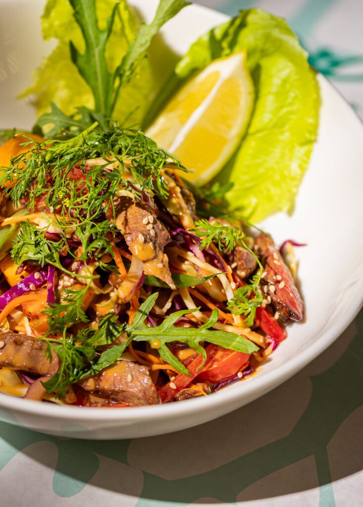 Pour les carnivores : Salade Bœuf Thaï — bœuf snacké et vinaigrette épicée.