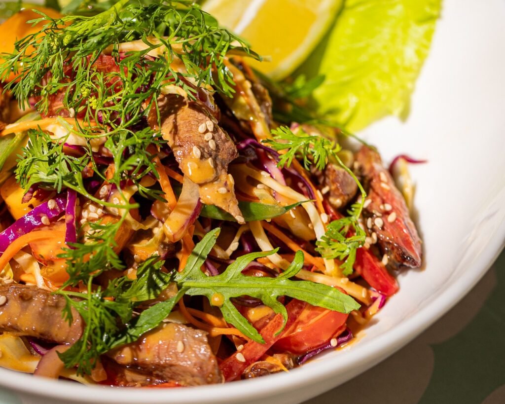Les Eggs Bénédicte en quatre variations ont fait la réputation du restaurant auprès des amateurs de brunch. Les salades fraîches — Niçoise, Grecque, Bœuf Thaï, Gambas, Burrata — satisfont les appétits soucieux d’équilibre. Les burgers gourmets et club sandwichs régalent les plus gourmands.